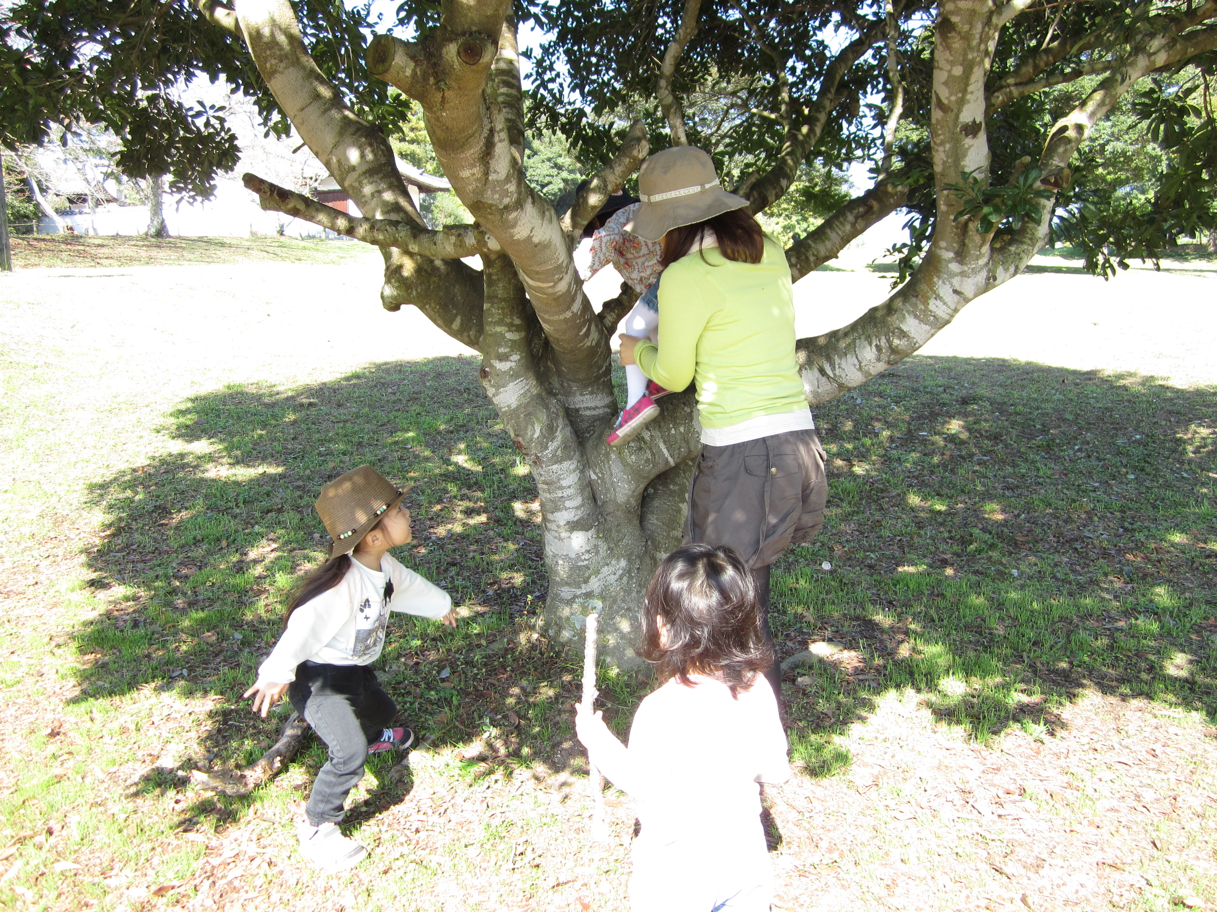 大きな木がたくさんあって、木登りに挑戦!!